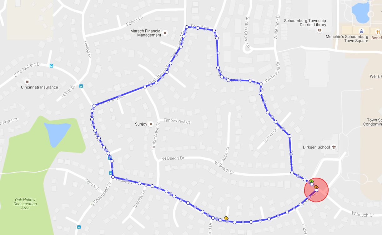 If you're running late, meet at Dirksen Elementary School (116 W Beech Dr, Schaumburg) at 6:00 PM. Be sure to warm up for your first loop.